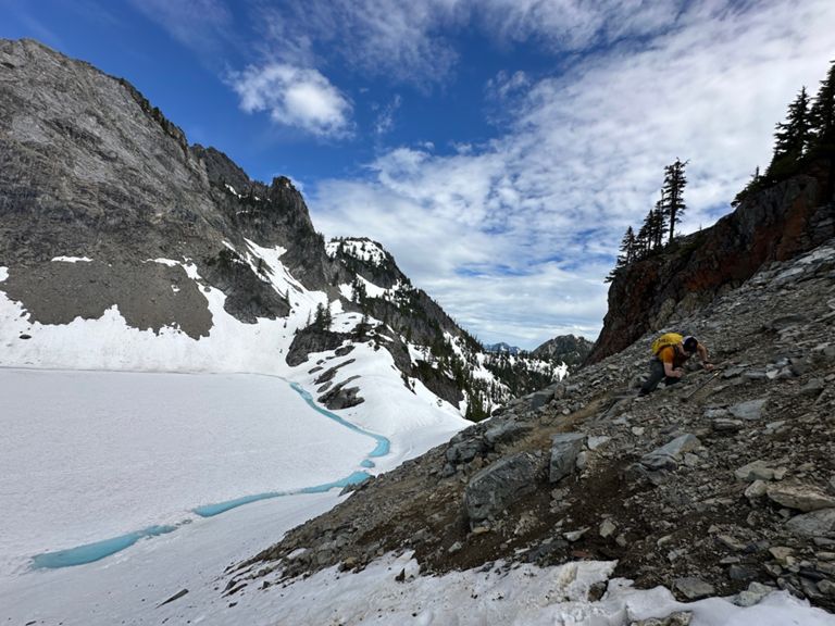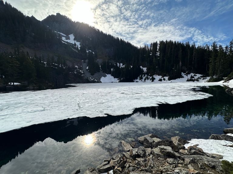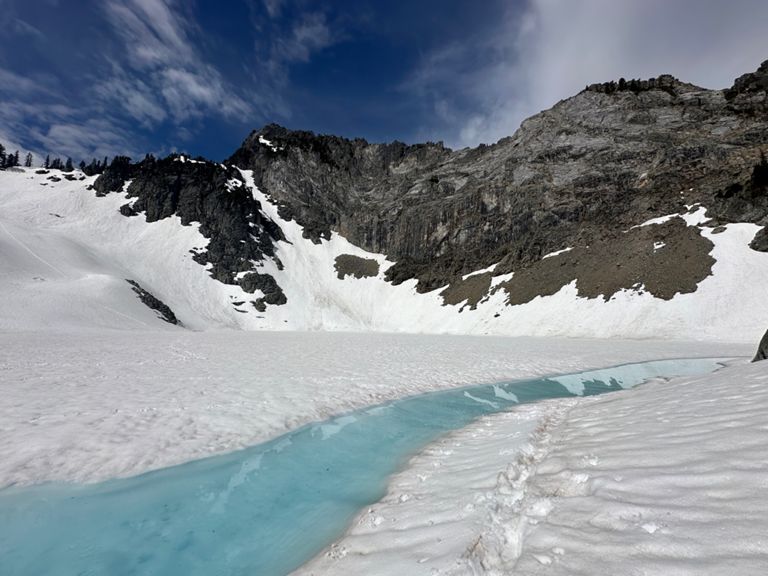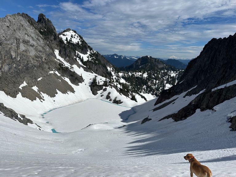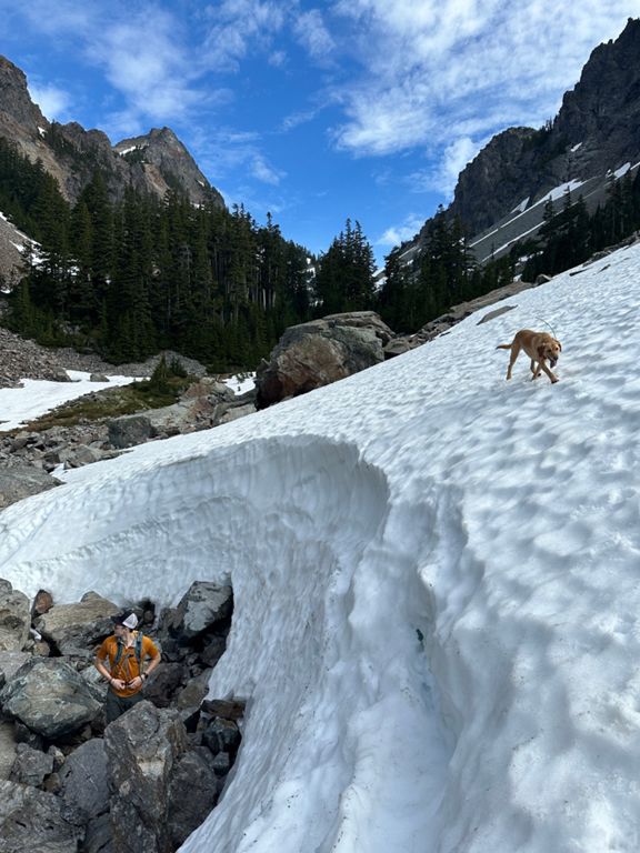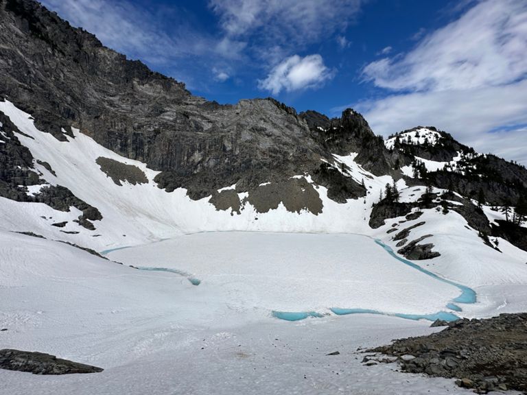 But this will always be a favorite. Snow from Melakwa. Chair Peak Lake is frozen. Great glissading snow. 9 PBEs