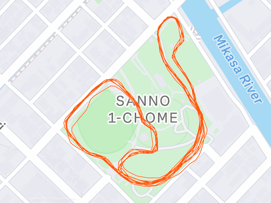 8Kビルドアップ走@山王公園 (4'00"/Km -> 3'40"/Km)