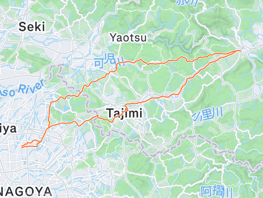 で、旧中山道を逆向きに走ってみての感想だが、いつもの御嵩から恵那向けの方が正解だなと思った。逆向きだと恵那に到着した時点でそこそこ疲労してるうえに、お昼食べてからすぐ十三峠の激坂が続くのは非常にキツイ。御嵩からだったらお昼ごろ恵那についてランチ、下り基調の下街道で戻るので逆流しそうなのを堪えることもなく、楽にまぁまぁいいペースで走れる。