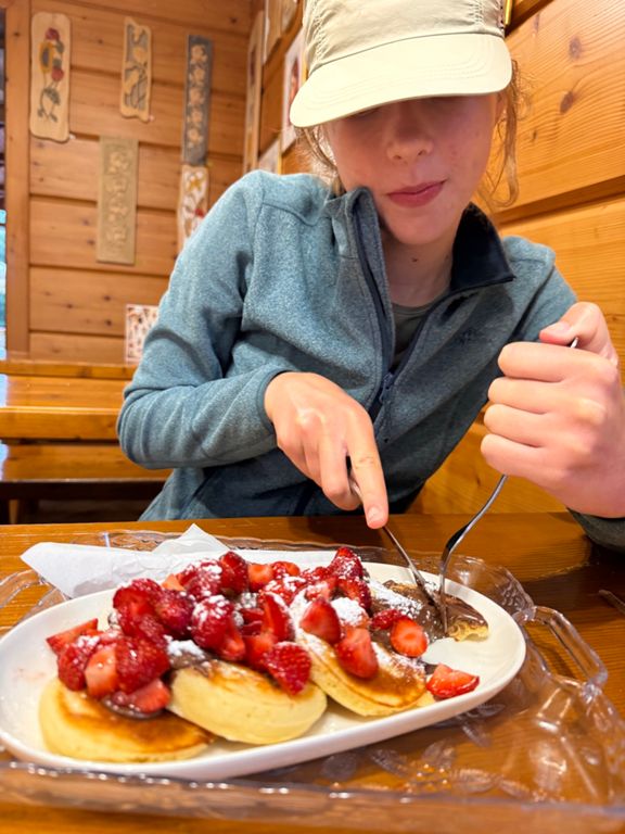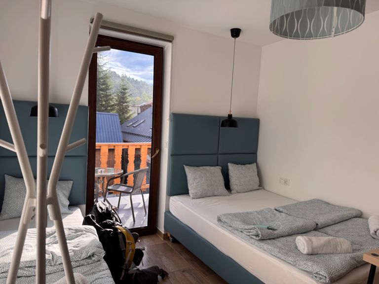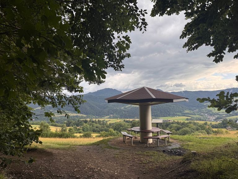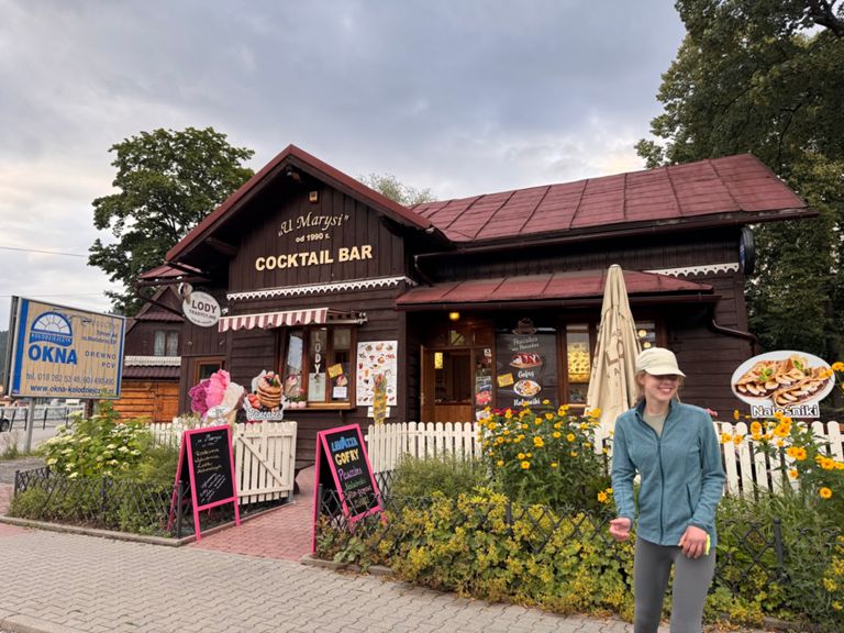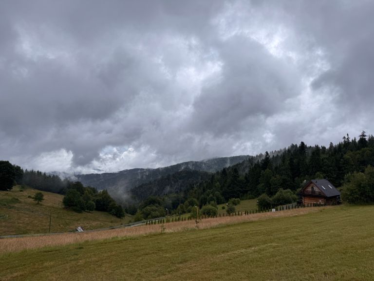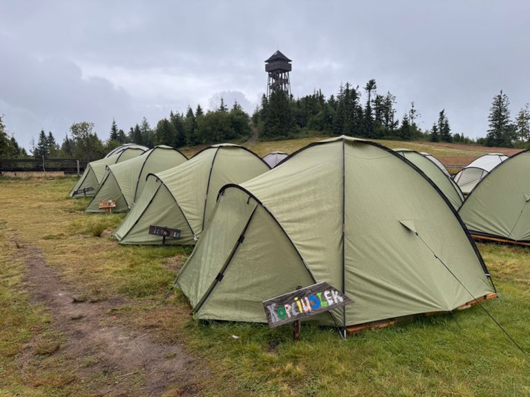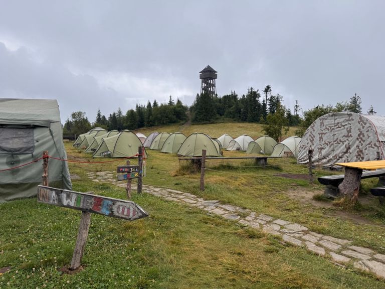 It rained all night and lightly through most of the day. In the end, it wasn’t that bad... just a shame about missing another lookout tower in the thick fog. Plus, we ran out of food, so at least our backpacks were lighter. An interesting part was visiting another basecamp, in a very nice spot below the Lubań tower. We supported the camp managers with a small contribution (for coffee) and by carrying a small bag of trash down to the town (12 km). We spent about an hour sitting and chatting, learning a lot about how these camps operate. In the town of Krościenko, we finally had dinner and visited a bakery that felt like it was from another world (The Good Place).