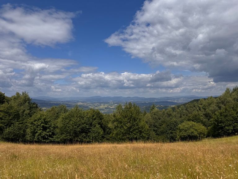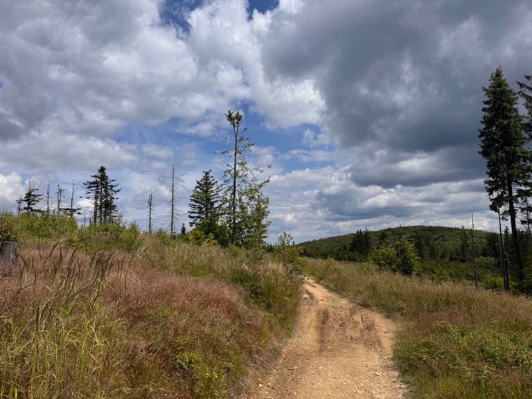 A big climb right at the start, otherwise perfect weather, weekend, so the trail was livelier. We passed by a lady hiker several times and ended up chatting for a long time about all sorts of things, time flew pleasantly and we had some good laughs. After a small hesitation and a tough moment up on Jaworzyna, we still made it all the way down to the town. Anetka summarized the whole route day by day so the time passed quickly. We managed to cover over half of the entire GSB and according to the watch, 302 kilometers in total. Anetka finishes here - she got an offer to go with her grandma to Cyprus for a week. And I will decide what’s next because my Achilles tendons are really bothering me.