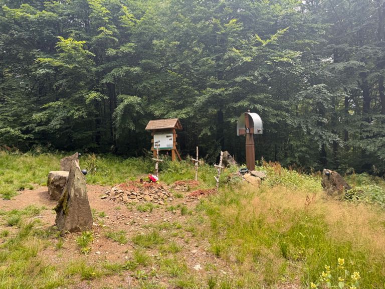 Everyone I meet, whether on the trail or at huts and campsites, is heading the other way. They’re basically just starting out. I’m almost done. But at least they always give me good tips on where to sleep. Today I headed to Bacówka pod Honem in Cisna. Just forests everywhere — bear territory. One hiker coming the opposite way even warned me there was a bear nearby and to be careful. So I sang louder, kept my bear spray ready at hand, and charged my phone for a bear selfie. None of that happened. The day went well, some pain though — my left ankle sometimes feels like I’m just dragging it behind me, but then I warm it up again, and it goes round and round. So I could probably keep walking all the way until autumn. I’m sleeping in my tent, the hut was full, but dinner and a shower were sorted.