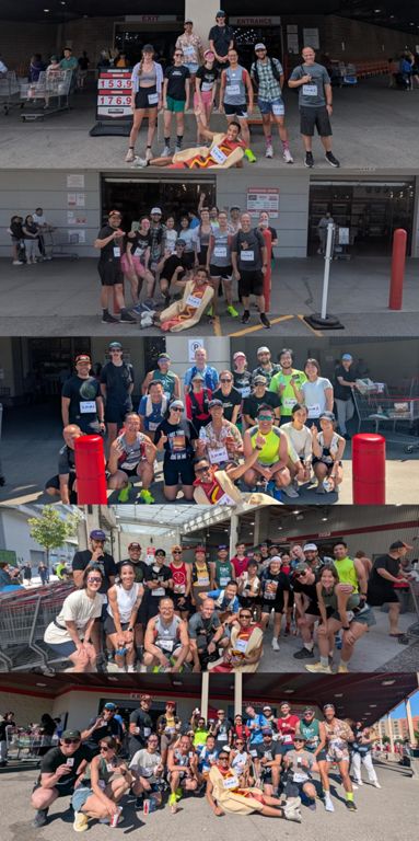 Costco Marathon in a hot dog costume 🌭 What a turnout today! Thanks to all that joined me on this silly idea. We got greeted by 3 managers that hooked us up with free water, and they said our photo will go at their next corporate meet in Seattle.