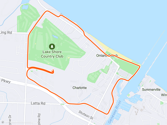 A nice 8:58 pace. Weather: 57F, 94% RH, 5 mph SW wind, partly cloudy.