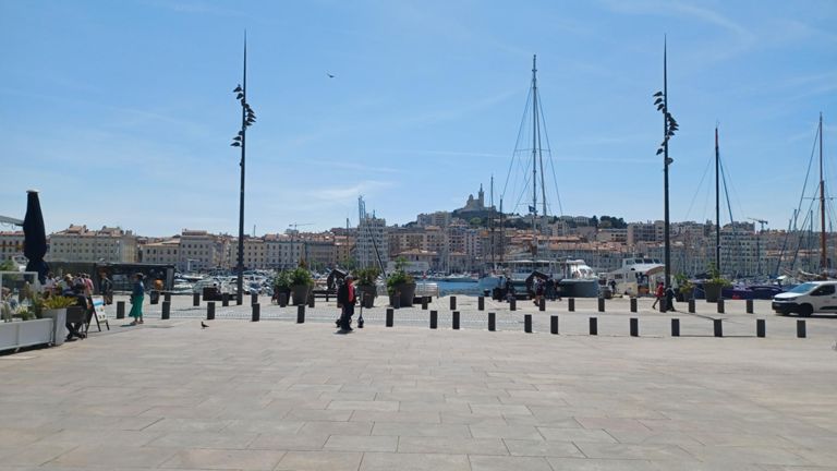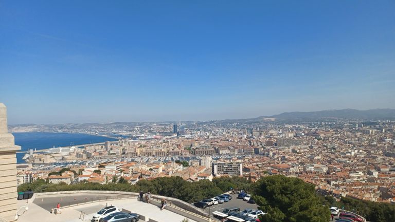 Retour à la gare par la plage, Notre Dame de la Garde et le vieux port.