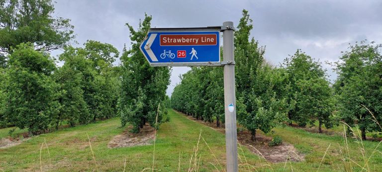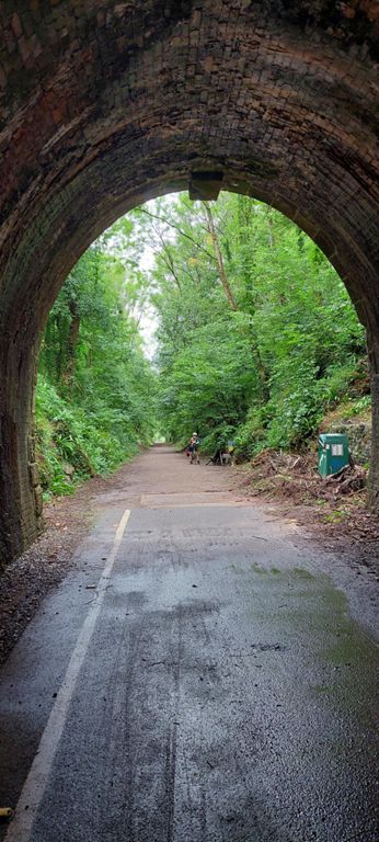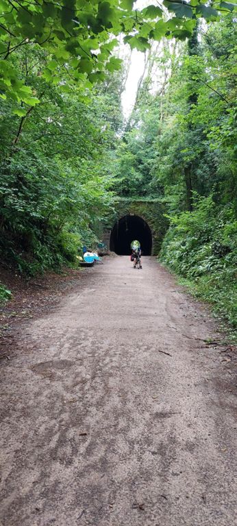 Strawberry Line, which at one point was beside apple orchards, cut through the first hill, and the other was a gentle climb. The apparent route over the Severn Bridge was blocked; we found another after a spell of A road with respectful fast drivers. Only small sections to adjust. Friends in Caldicot celebrated us with a communal BBQ in the evening. Time to record outside not inside churches.