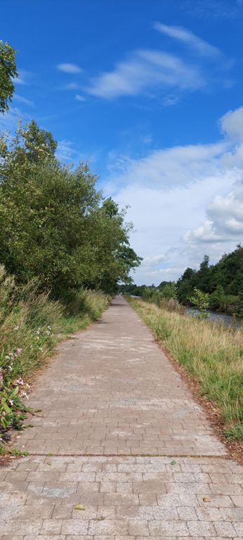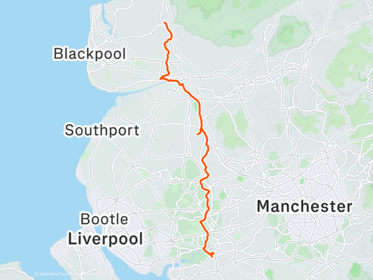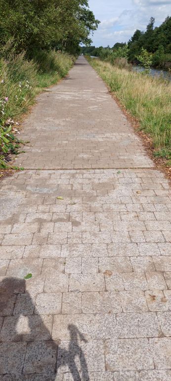 Leaving Warmshowers where slept well for breakfast with friends, most of the day's route was better than anticipated, particularly our section of the Sankey Way. The first section of Leeds to Liverpool Canal was paved. Need ro replace most of the second unpaved section from the road bit by Arley Lane to the bit bythe M6/A6 junction ??: footpath too bumpy, more puncture risk than necessary.