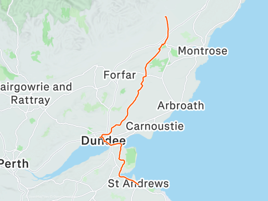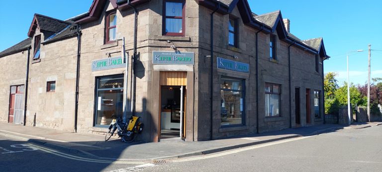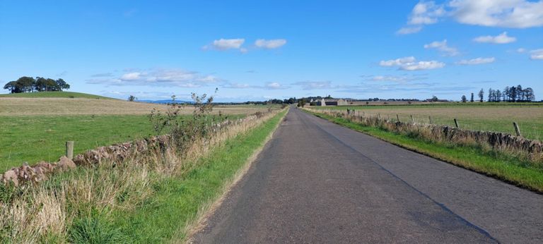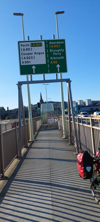 It was almost noon when we left Brechin, 9 miles in, after buying the day's food and effecting a way to keep the pannier working. I will explore replacing it in Edinburgh for the last 800 miles.