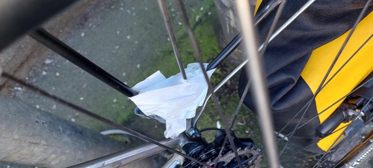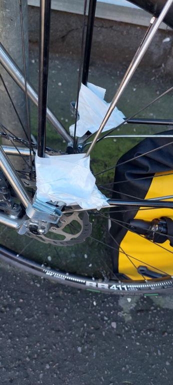 The morning M check revealed the cause of yesterday's squeaks: the left rear pannier stay had sheered near its base.