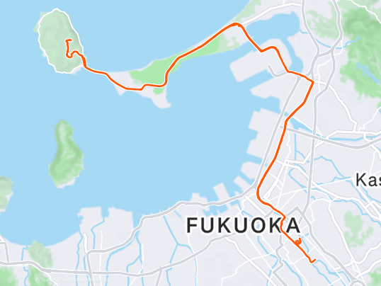 濱田さんに誘って頂いて志賀島往復コースで 60 キロ。完走出来るか心配だったけど、気合と根性で走り切ることが出来た。先日の北九州マラソンよりも完走の充実感は高い。