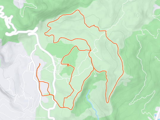 ゆっくりスタートすると登りで渋滞するという助言を頂いたので、スタート直後からペースを上げた。最初の1キロくらいは先頭集団にくらいつくもののあっという間に離されて、あとはずっと一人旅。登りのほとんどは歩いてしまい、第一エイドの後の急こう配はまさに壁だった。その壁をよじ登った後、まさにトレイルランニングの醍醐味のような稜線を駆け下り、林道を抜けた後、コースロスト (汗)。うろちょろしているうちに一人に抜かれ、必死に追いかけるも追いつけずにそのままゴール。