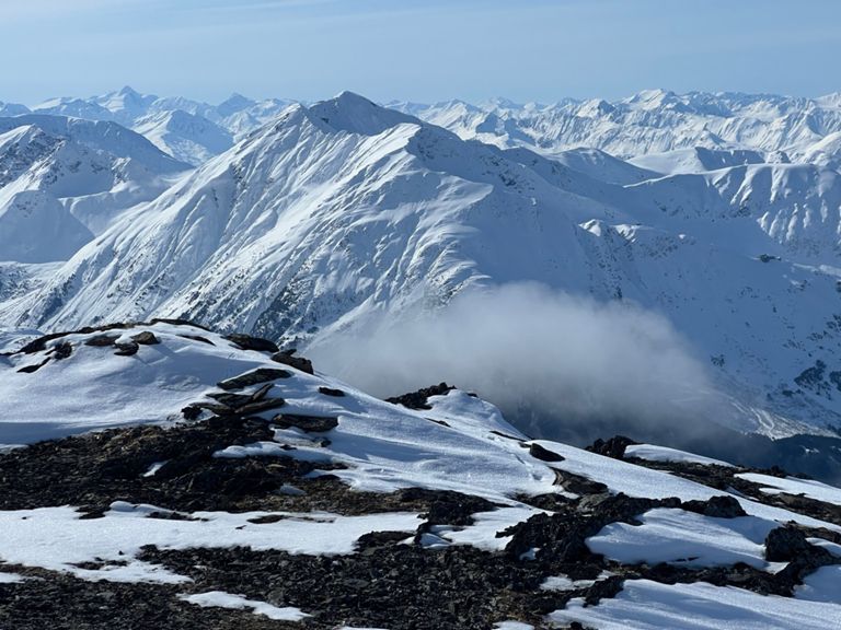 With Isaac. Goat ridge > E ridge of Yudi > N face of Yudi > W shoulder of Yudi > Goat ridge.