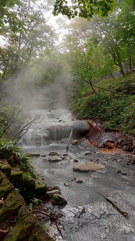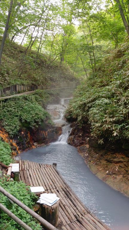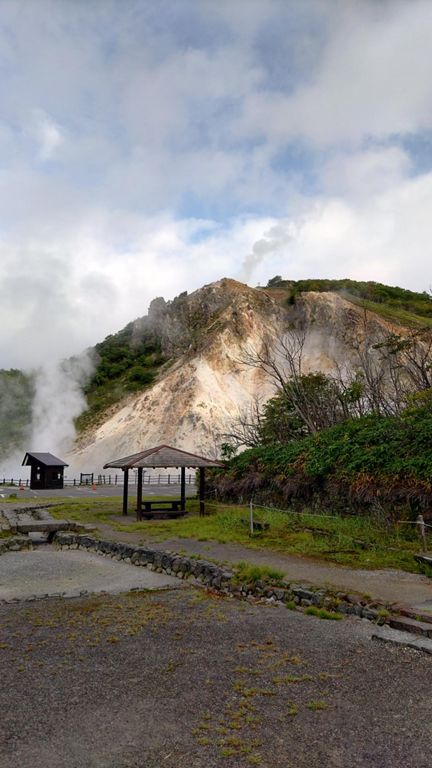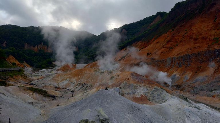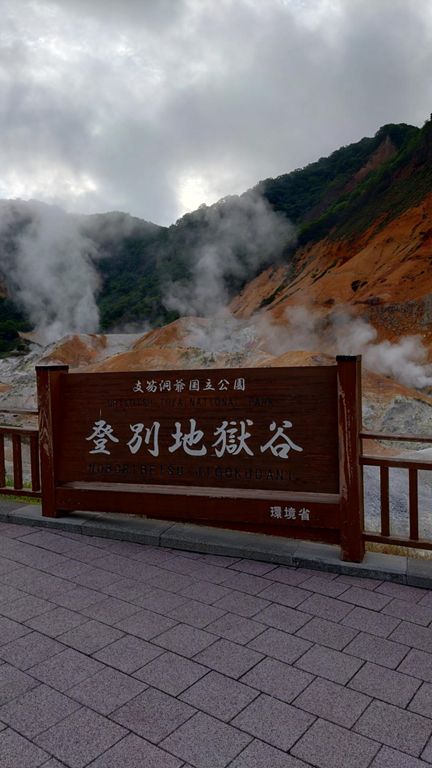 登別温泉地獄谷を走る