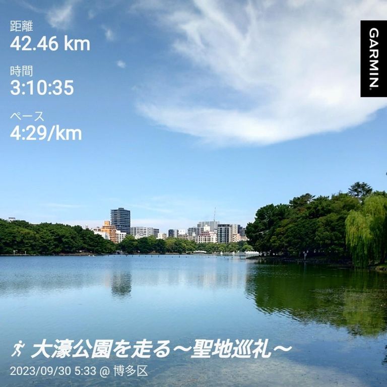 大濠公園での練習会に誘って頂いて走ってきた。 ほぼ E ペースで 3 時間 10 分ほど。