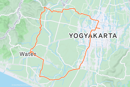 UNY Yogya-Tugu-Jalan Bantul-Palbapang-Brosot-Tugu Pensil-UNY Wates-Pengasih-Saluran Irigasi Nanggulan-Minggir-Kampung Emas-Kebon Agung-Jombor-RR Utara-Jakal-Mirota Kampus-UNY Yogya